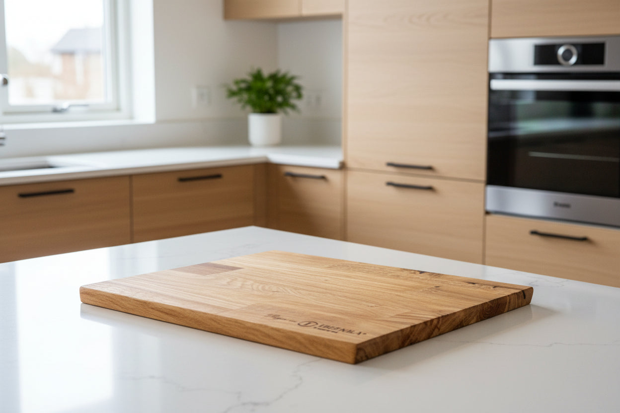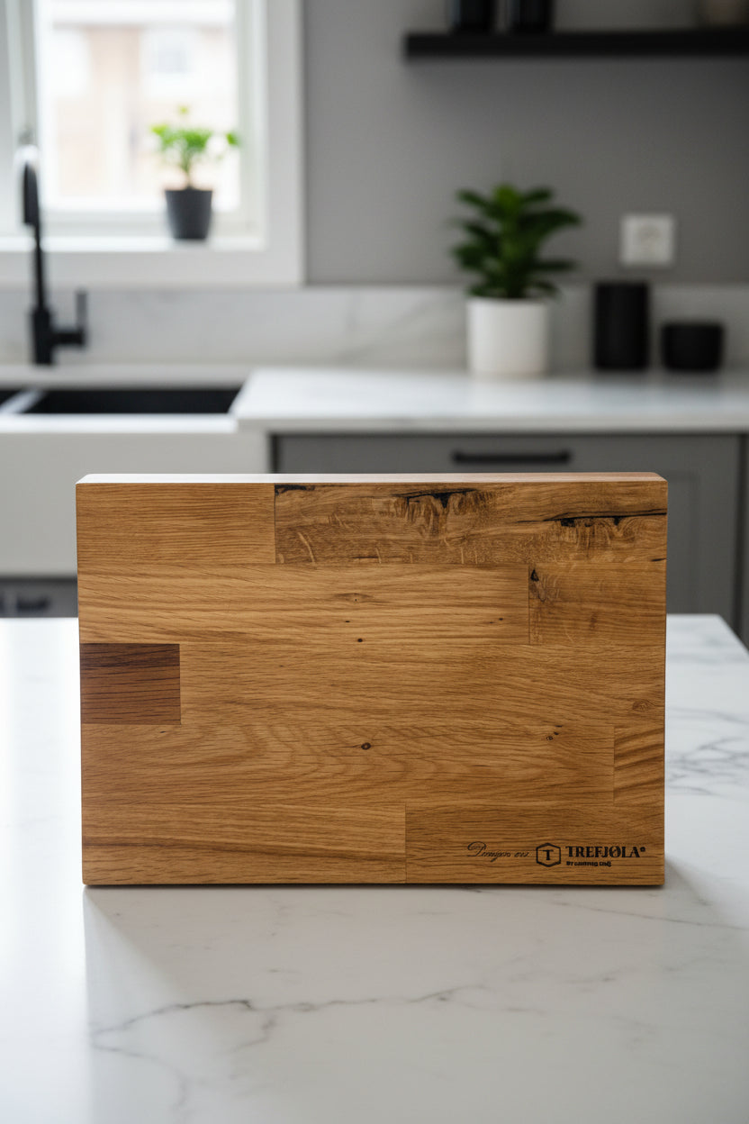 Tynnfjøla er en elegant og funksjonell skjærefjøl laget i solid eik. De skråskårne sidene gjør den enkel å gripe og løfte, samtidig som den lette konstruksjonen gjør den mer håndterlig enn mange andre fjøler – uten å gå på kompromiss med holdbarheten.